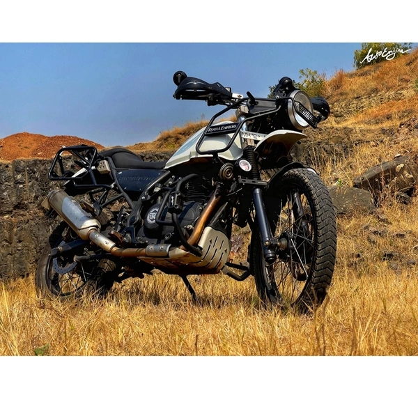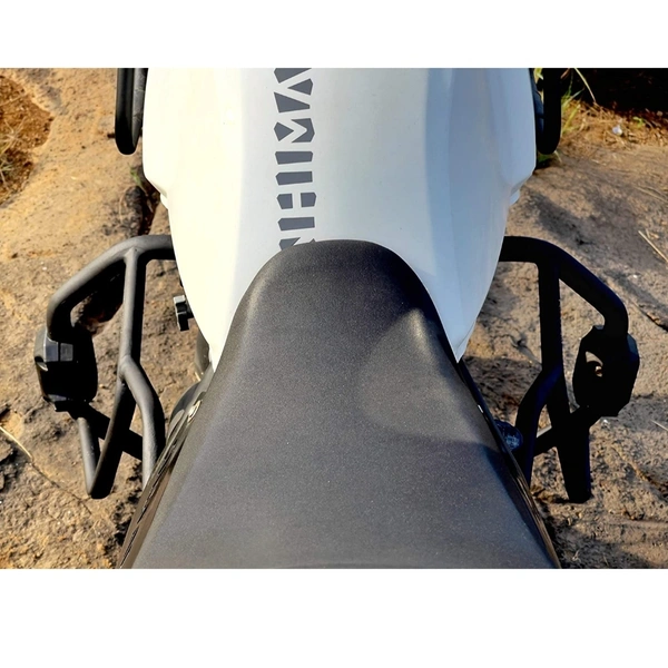 This crash guard is designed keeping in mind for off-road & on the road so that are no overhangs that may get caught in off-road obstacles. The crash guards are locked at 3 points for maximum rigidity and cover the engine casing. The set comes with sliders to save the bike from damage in case of a fall. Mounting hardware included. hand tested of precision welding for uniform finish and strength. Compatible with the Himalayan BS3, BS4 and BS6.