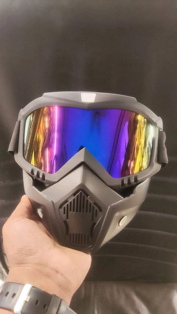 - Stunning looking Face Mask & Multicolor Goggles for Open Face Helmets. (Note: Helmet not included)