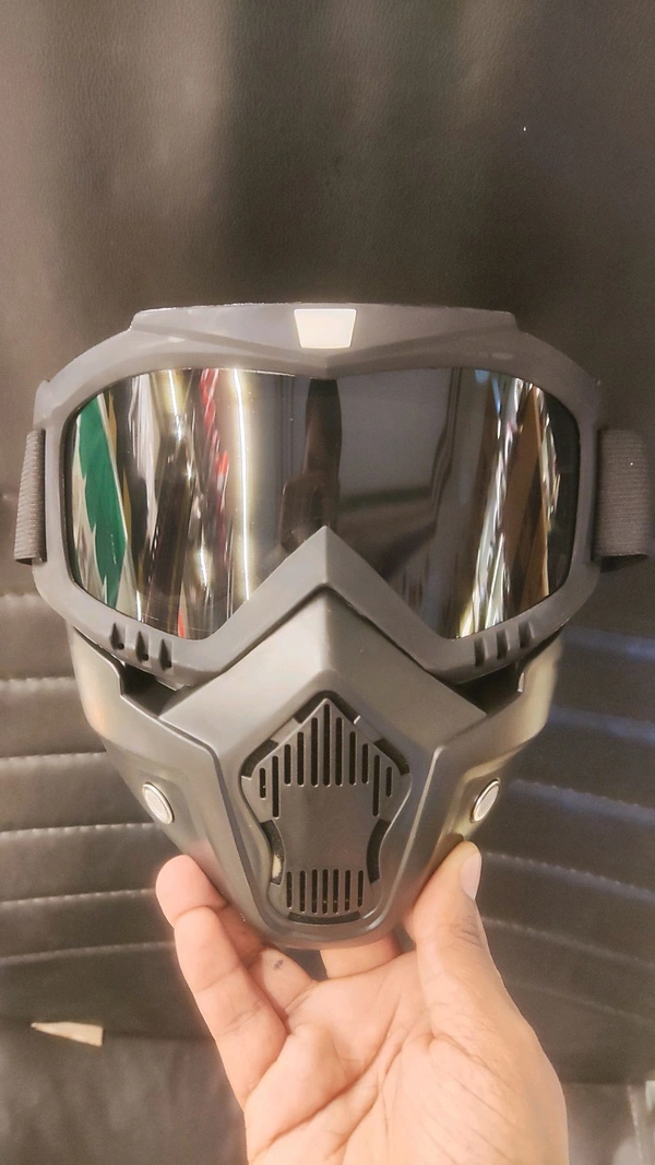 - Stunning looking Face Mask & Multicolor Goggles for Open Face Helmets. (Note: Helmet not included)