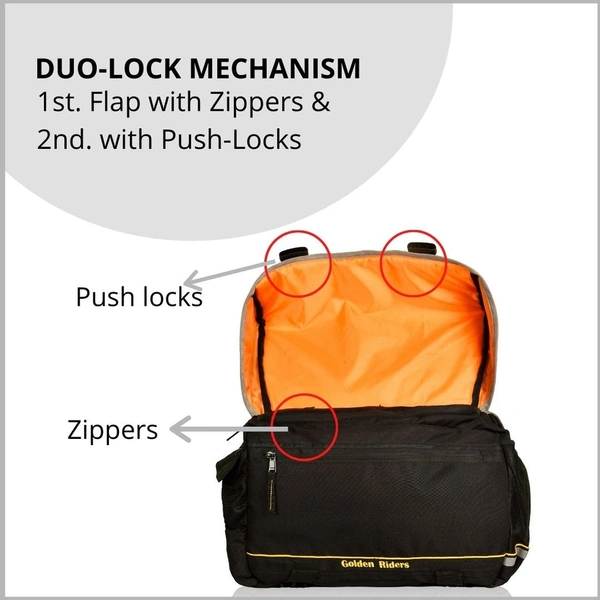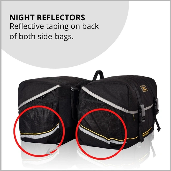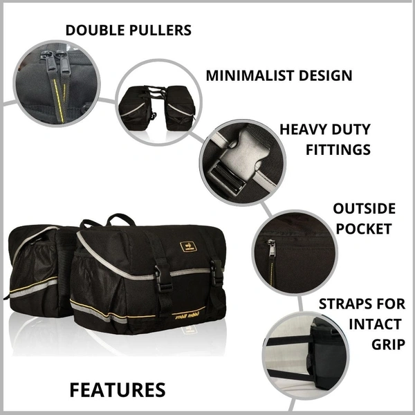 - Sturdy pair of 2 side-bags, with adjustable-gap between bags.