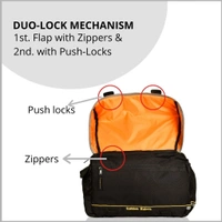 - Bag has a flap opening, then w/resistant zippers to get entry to main compartment.