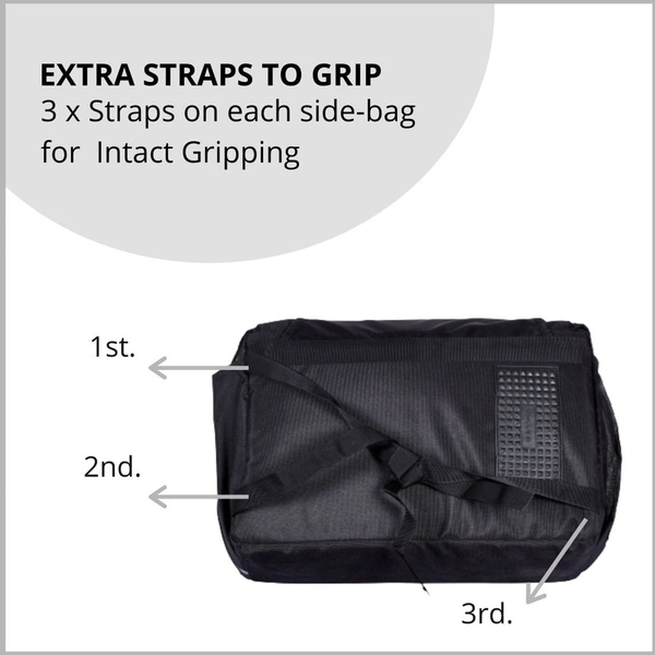 - Multiple straps on back-side for intact grip of bags on bike.