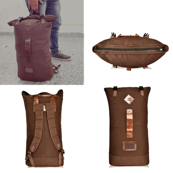 - PRODUCT & DESIGN: An Old Styled - Basic duffel canvas-leather bag, designed by fusing two varied styles in one. Backpack duffel bag to be carry as backpack. It has double closure mechanism with zippers first & then roll top. It has padded backpack adjustable straps for user comfort.