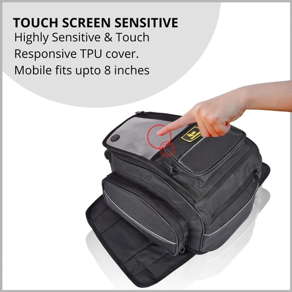 - Magnetic tank bag, with inclined mobile pocket for better view.