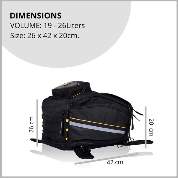 27 LTRS/ MAGNETIC/ EXPANDABLE/ CONVERTIBLE/ TANK-BAG FOR METAL & FIBRE TANKS.