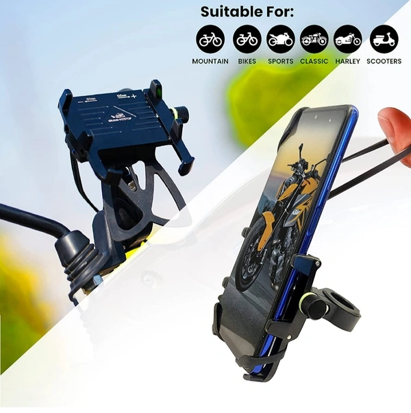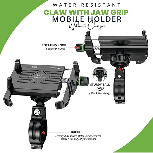 Grand Pitstop - Claw with Jaw Grip Aluminium Bike / Motorcycle / Scooter Mobile Phone Holder Mount, Ideal For Maps And Gps Navigation - Black