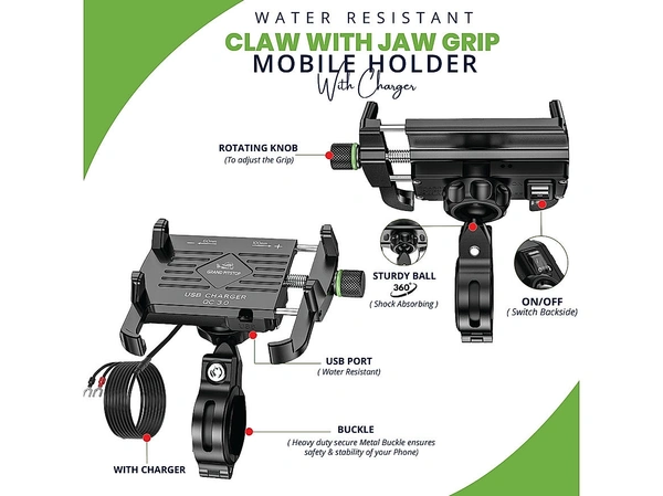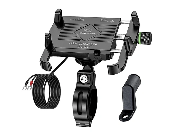 Grand Pitstop Claw with Jaw Grip Aluminium Mobile Holder with Charger - Black