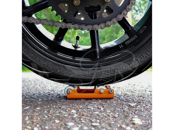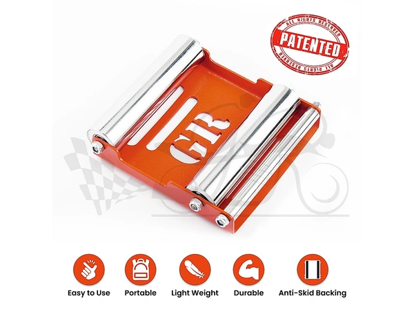 Grandpitstop focuses on Making Bike Rides Safe and Comfortable through its innovative designs. GRoller is an ideal replacement to a Paddock Stand and can be carried along with you anywhere on your ride. It's small size and light weight makes it easy to fit in your travel bag and helps you lube and clean your Motorbike chain after long journeys. Weight only 799 gm, this can easily take any bike up to weight of 220kg and Rear Tyre width of 180mm. Now you just have to roll your bike over GRoller to do Chain Cleaning, Lubrication, Tyre inspection etc. Suitable for all mid-sized motorbikes.