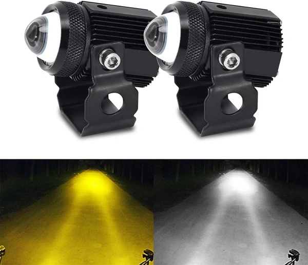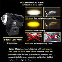 - 【Dual Color Motorcycle Led Fog Lights】HJG Mini Driving Lights Low beam 3000K Amber Yellow & high beam 6500K White, can be fog lights, DRL, Driving Light.