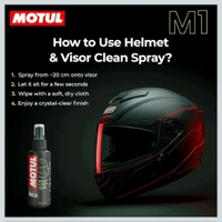 - Spray the Motul M1 cleaner directly on your helmet and visor.