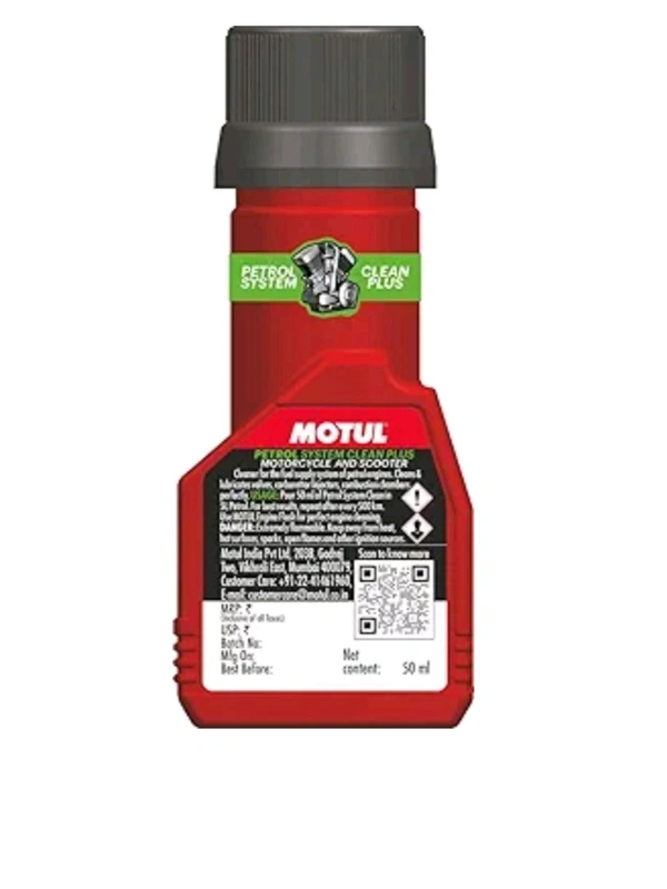 Motul Petrol System Clean Plus 50ML is a fuel additive designed to clean and maintain the fuel system of petrol (gasoline) engines. It’s formulated to remove deposits and contaminants that accumulate over time in the fuel injectors, intake valves, and combustion chambers.