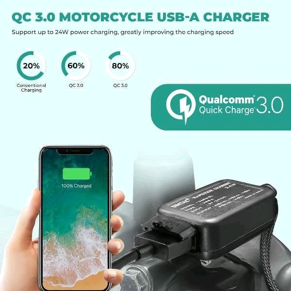 Designed for those who value convenience, performance, and reliability, this charger ensures your devices stay powered during your rides, so you can ride smarter and stay connected wherever you go.