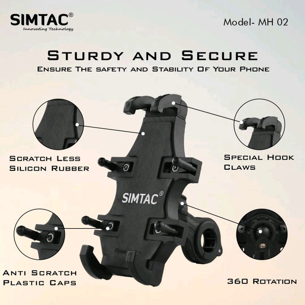 Simtac Spider Grip Mobile Holder with Universal Fitment for Bike & Scooters | MH02