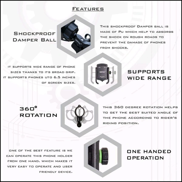 In modern eva, we all enjoy riding to beautiful places; the places we had never been and for that we are dependent on a navigation device which navigates to specified route. Being a bike rider, only a mobile holder keeps our smartphone firm on the motorbike. One has not to hamper his ride and take out the mobile to navigate the location. One can ride with ease and smoothness. Thus, a mobile holder becomes a significant tool of rider’s long journeys, to locate as per rider’s positioning. Simtac’s super grip mobile holder serves a rider’s need effectively and efficiently.