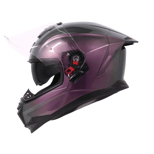 This helmet features a quick-release chinstrap mechanism designed for both ease of operation and enhanced safety. It utilizes high-quality UV-resistant polyurethane paints, not only for aesthetic enhancement but also for durability against sun exposure. To ensure optimal comfort, it incorporates a dynamic ventilation system that significantly improves airflow, keeping the rider cool and comfortable during extended rides. The outer shell is crafted from a specially injected high-impact grade of engineering thermoplastic, offering superior protection in case of accidents. Inside, the helmet is equipped with regulated density EPS concussion padding, lined with specially treated anti-allergic velveteen, which enhances both safety and comfort. Additionally, the helmet is fitted with a clear visor that provides excellent visibility in various lighting conditions.