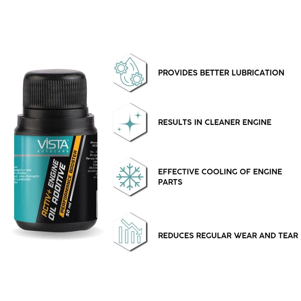 3. Recommended to use 50ml Vista oil additive for 1Liter of engine oil.